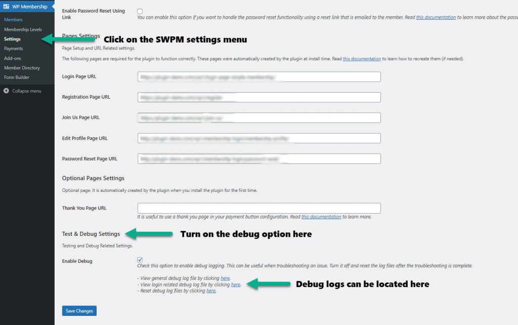 - Go to the WP Membership Settings -> Payment Settings menu. Check the Enable Sandbox Testing checkbox. Save Changes.