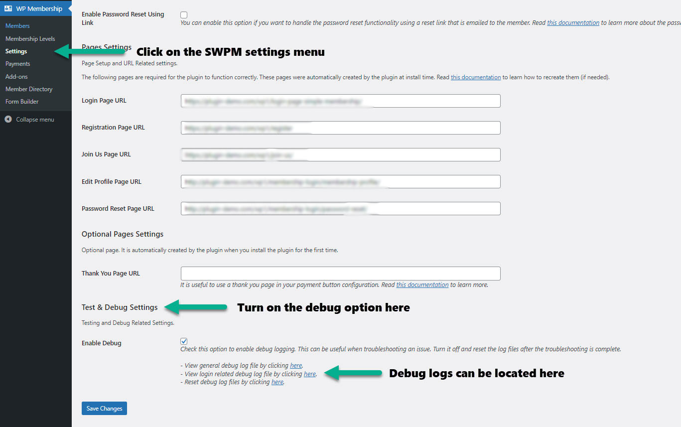 - Go to the WP Membership Settings -> Payment Settings menu. Check the Enable Sandbox Testing checkbox. Save Changes.